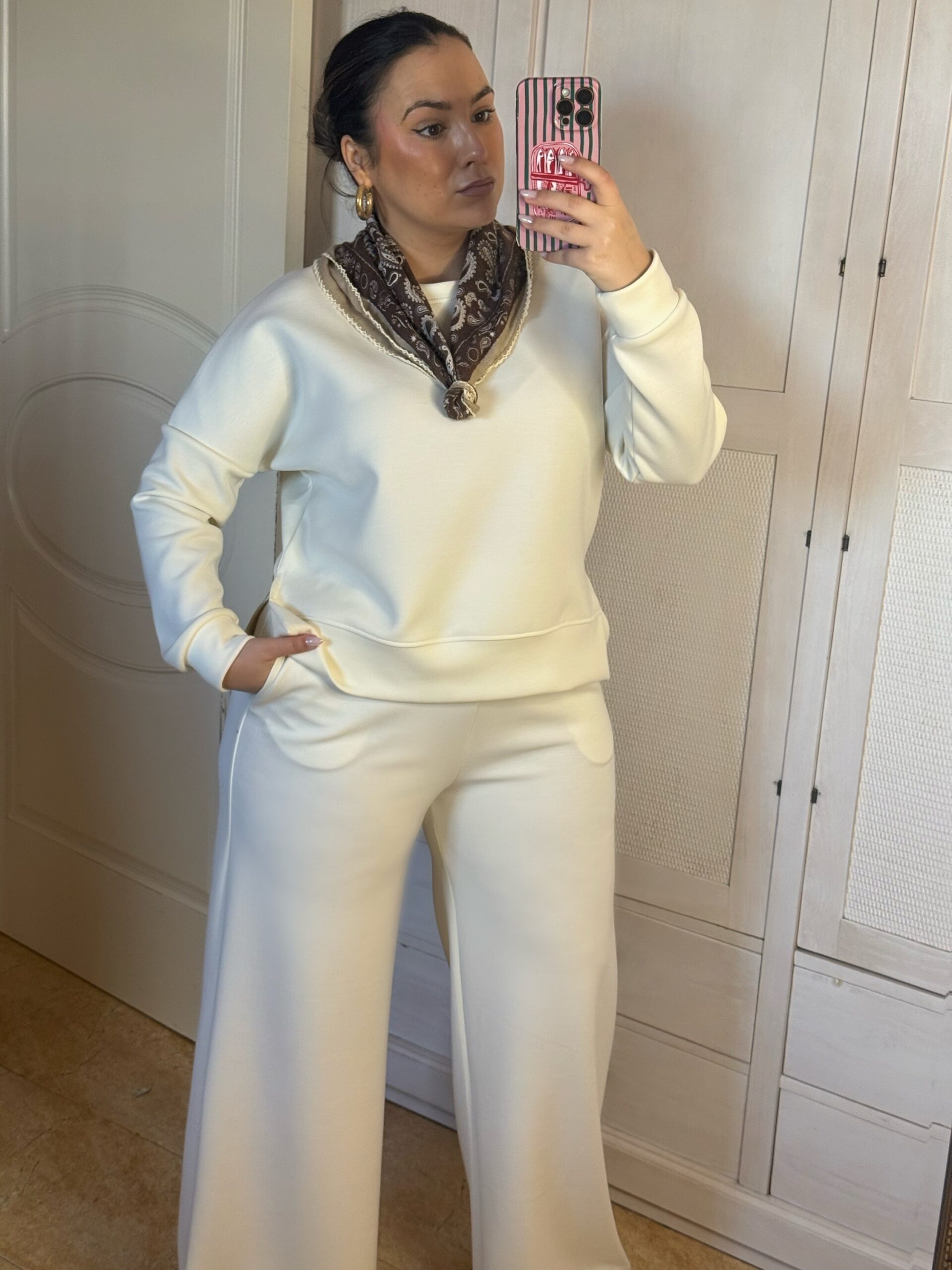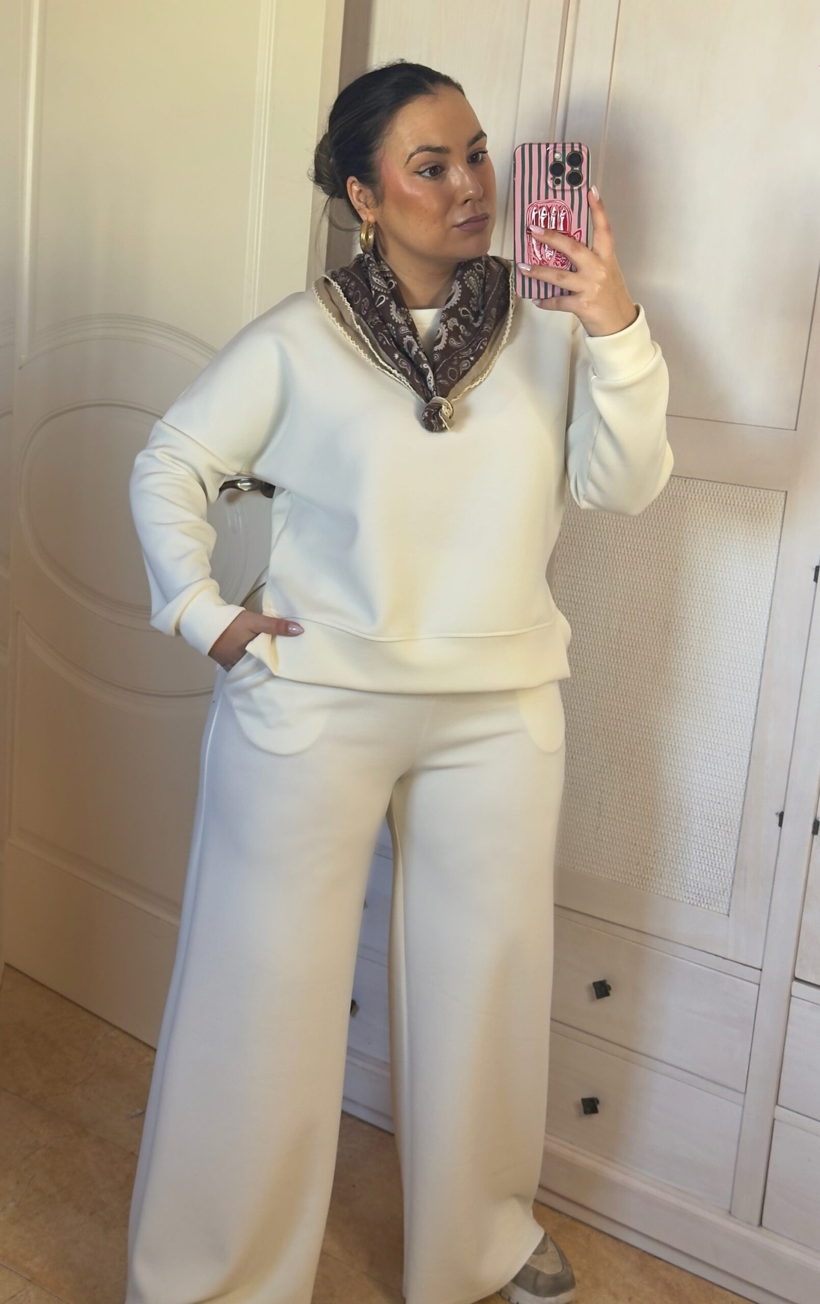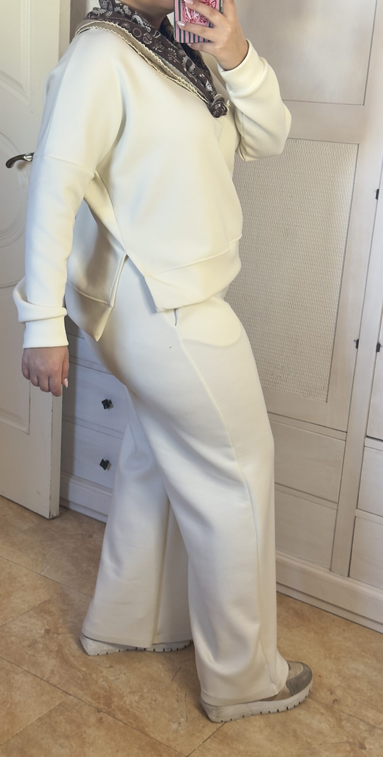 Chándal en tejido capa de aire con sudadera oversize y pantalón wide leg en color crema