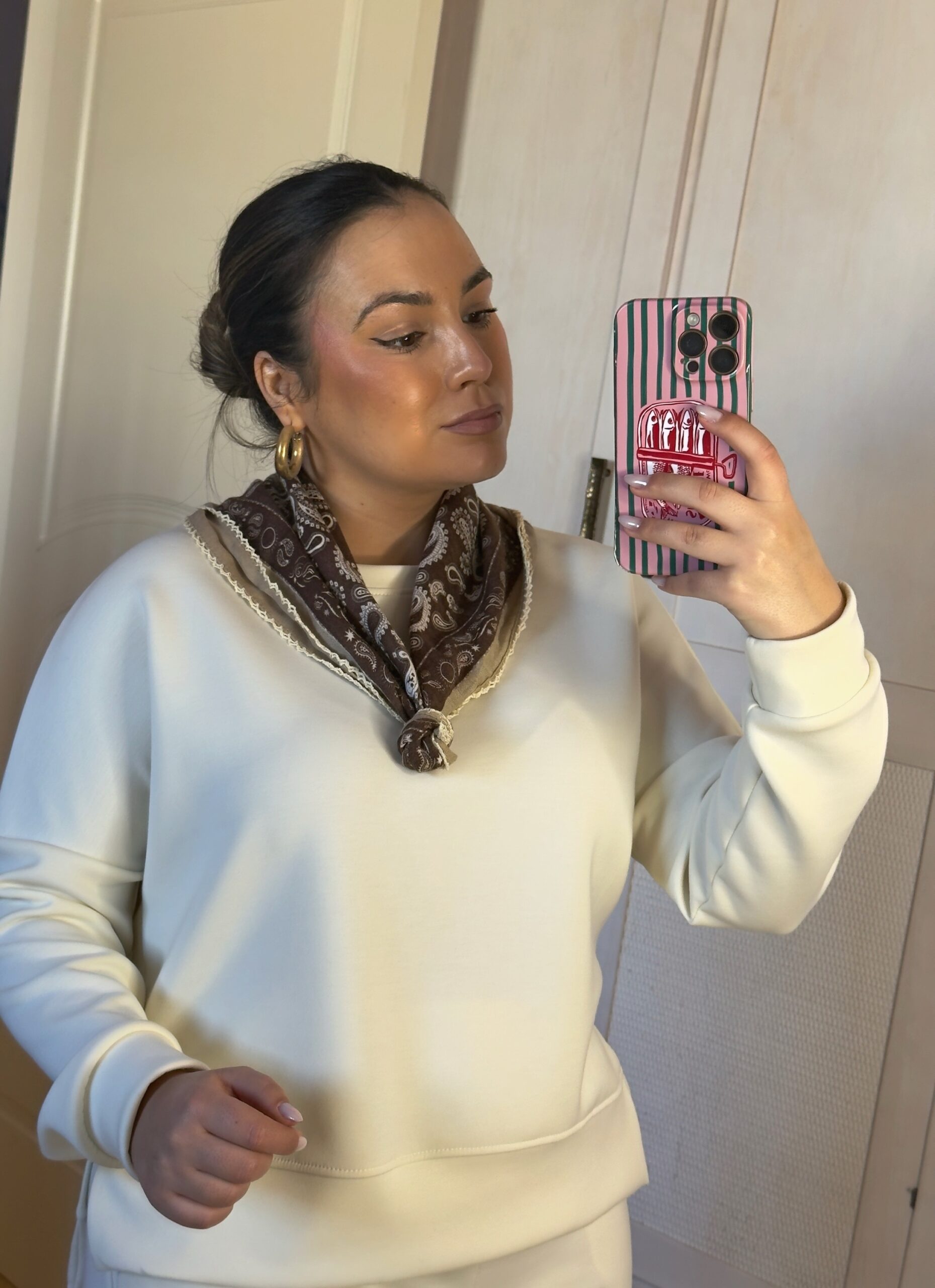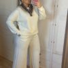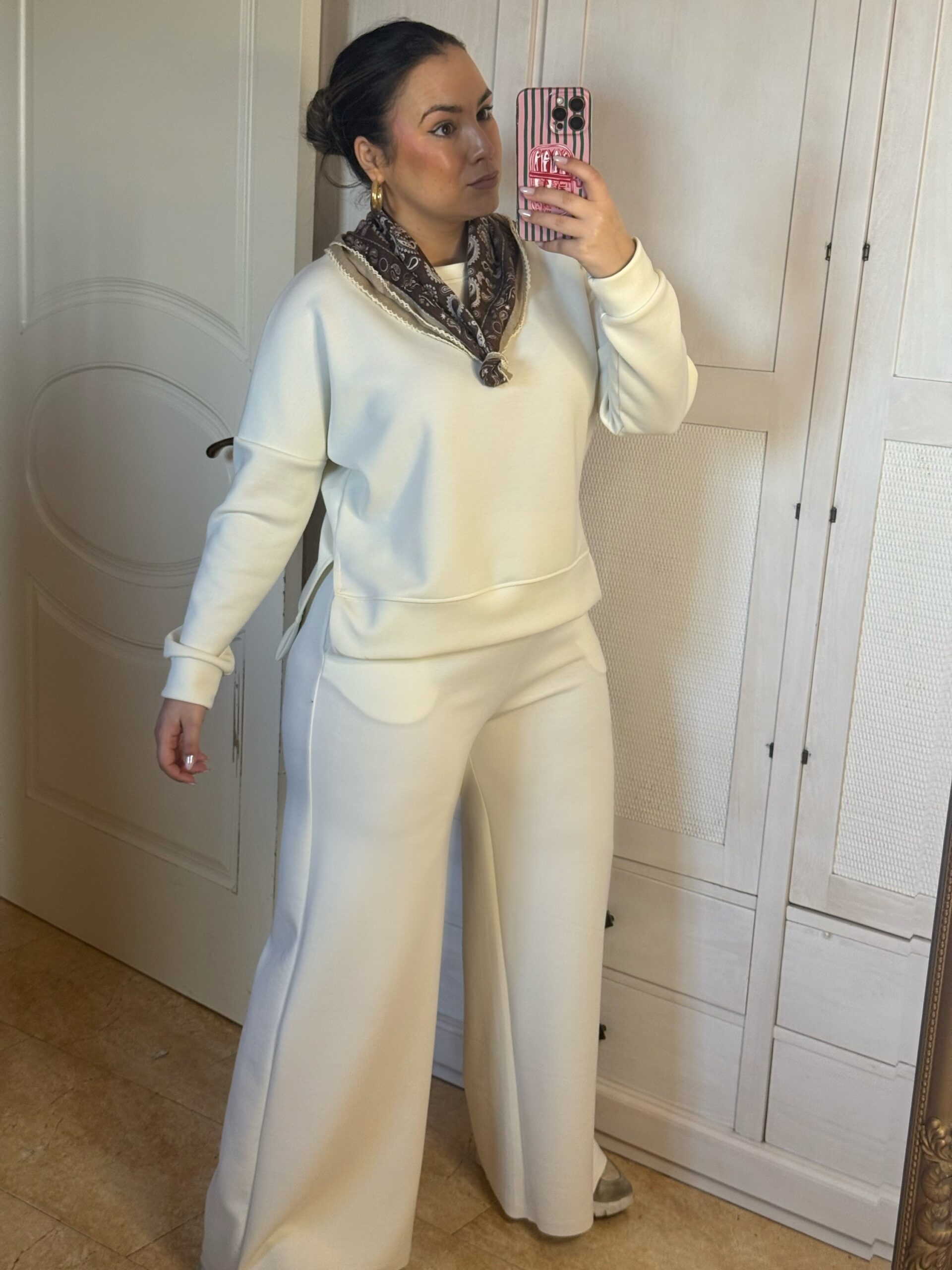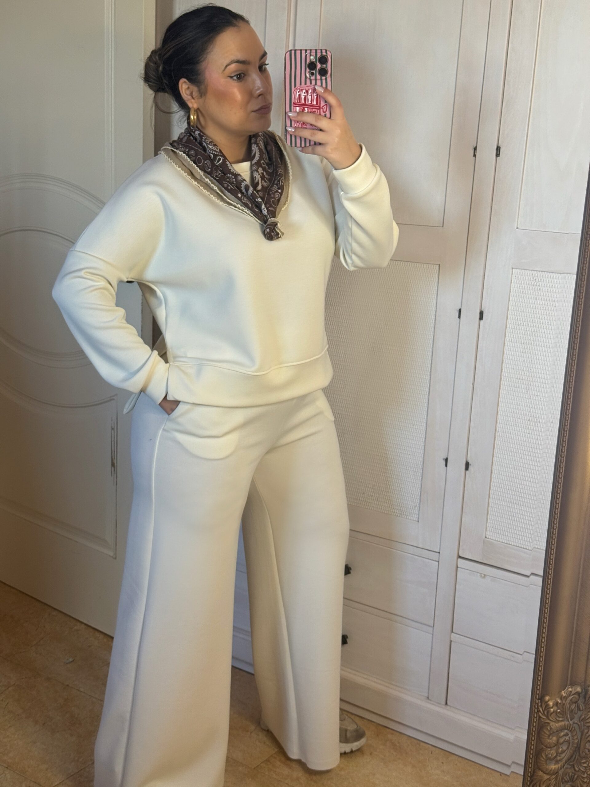 Chándal en tejido capa de aire con sudadera oversize y pantalón wide leg en color crema