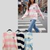 Sudadera confeccionada en algodón, sin felpa interior. Diseño de rayas anchas, cuello redondo y fit cómodo. Ligera y perfecta para entretiempo o looks casuales diarios.